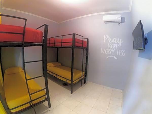 This dormitory room has air conditioning, a tiled floor and a flat-screen TV. The unit has 4 beds.